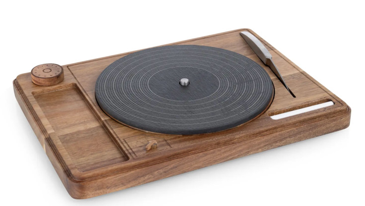 Because taste is half presentation, this is a cheese board that was designed to look like a record turntable, complete with spinnable slate platter, cheese knife tone arm, and some moveable dials. That’s fun. Of course if I see this at a party I’ll have no choice but to spin that platter so hard the camembert splatters the sofa. I will leave soon after, almost certainly without saying goodbye. “IT WAS YOU!” Haha, great New Year’s party, sorry I had to run.